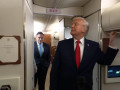 El momento incómodo de Trump cuando le golpean con la puerta del baño de su avión mientras habla con la prensa