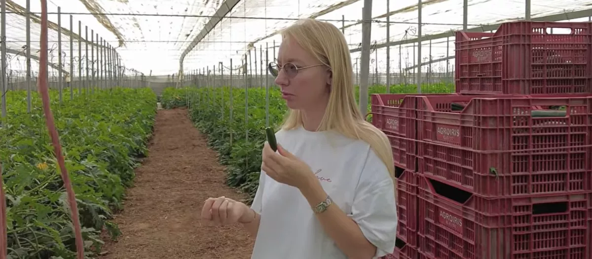La creadora de contenido rusa, Irina Mikhovich, @SpanishSaga, visita los invernaderos de Almería