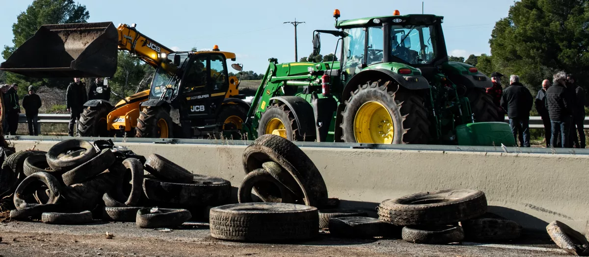 Agricultores y ganaderos cortan la AP-7 con tractores y rollos de paja, a 10 de enero de 2026