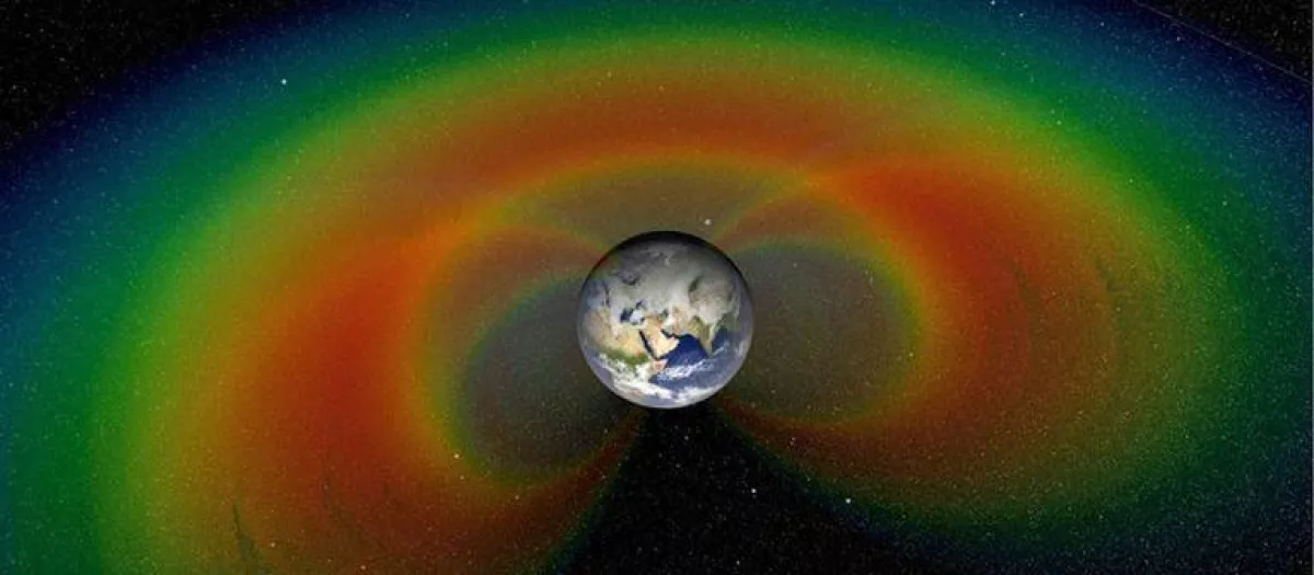 La Tierra se encuentra protegida frente a este tipo de radiación gracias a su magnetosfera, que actúa como un escudo atrapando las partículas más energéticas y desviando tanto las tormentas solares como el flujo constante del viento solar. Estas partículas forman dos zonas concéntricas alrededor del planeta, conocidas como cinturones de Van Allen, con forma de enormes anillos. El cinturón exterior está compuesto por partículas energéticas provenientes del Sol, mientras que el interior se genera a partir de las interacciones de los rayos cósmicos con la atmósfera terrestre.