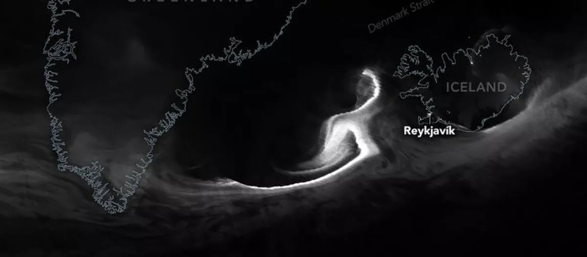 Aurora boreal captada por el instrumento VIIRS del satélite Suomi NPP en Islandia