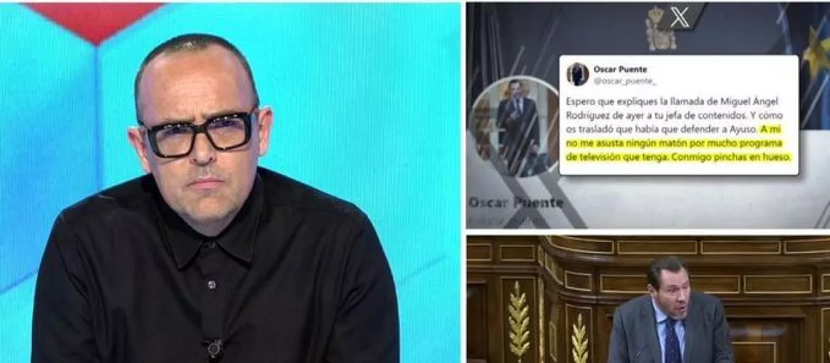 «Espero que expliques la llamada de Miguel Ángel Rodríguez de ayer a tu jefa de Contenidos (sic). Y cómo os trasladó que había que defender a Ayuso. A mi (sic) no me asusta ningún matón por mucho programa de televisión que tenga. Conmigo pinchas en hueso», ha publicado Puente en la mañana de este miércoles. El repaso de Risto Mejide a Óscar Puente, a quien ha dejado perfectamente retratado, ha sido aplaudido en el plató, por los usuarios de las redes sociales y por compañeros de profesión como Iker Jiménez.