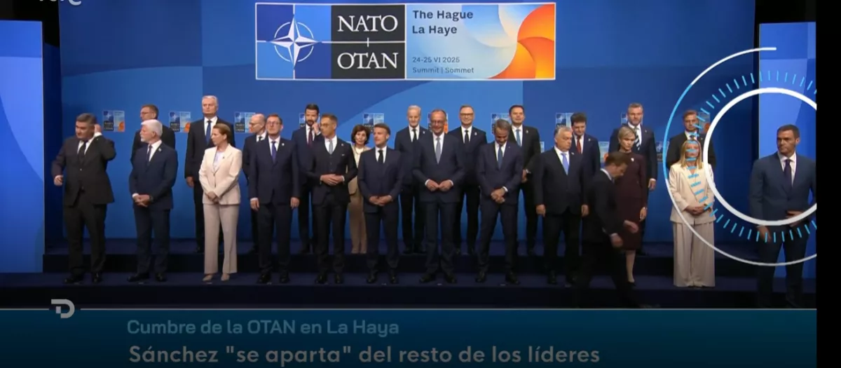 La cobertura del Telediario 1 de TVE sobre la reciente cumbre de la OTAN en La Haya ha dejado constancia de una imagen poco habitual del presidente del Gobierno, Pedro Sánchez. Los propios periodistas del ente público subrayaron su inusual bajo perfil durante el evento, destacando su actitud distante y su escasa interacción con otros líderes internacionales.