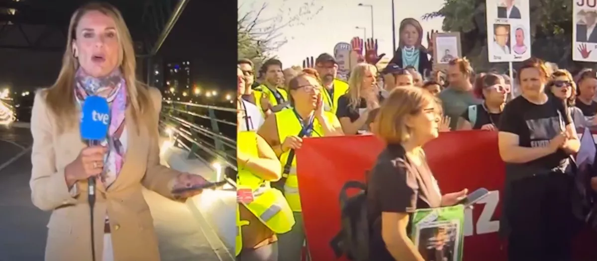 «Hemos escuchado a las víctimas más indignadas que nunca por ese mensaje recibido en los móviles este mediodía. Esa alerta enviada 12 horas antes de que se active el aviso rojo en la provincia de Valencia por lluvias y tormentas. Dicen que se ha enviado tan pronto para evitar que la gente acudiera a esta manifestación y recuerdan que el día de la DANA se envió demasiado tarde», concluyó antes de que los espectadores de TVE pudieran ver la pieza del Telediario Fin de Semana sobre la manifestación.