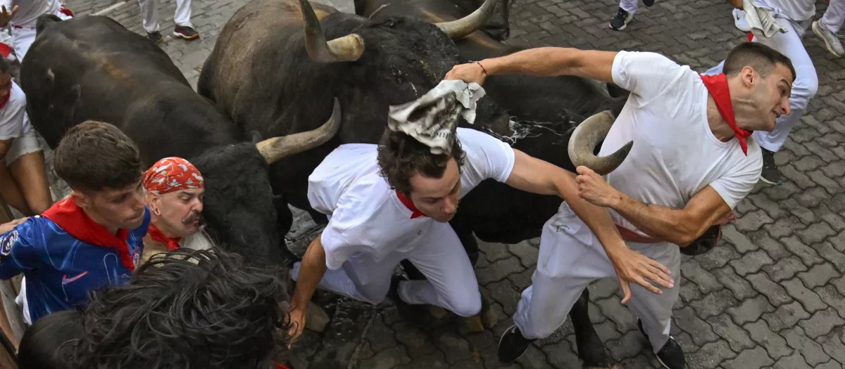 En ese tramo, especialmente en Estafeta, la manada ha avanzado de forma hermanada, dificultando a los corredores encontrar huecos para correr, aunque se han visto algunas carreras breves pero estéticas. A mitad de esa calle, uno de los toros ha tomado la delantera sin fijarse en los mozos, dejando ver, una vez más, la nobleza característica de los Miura.