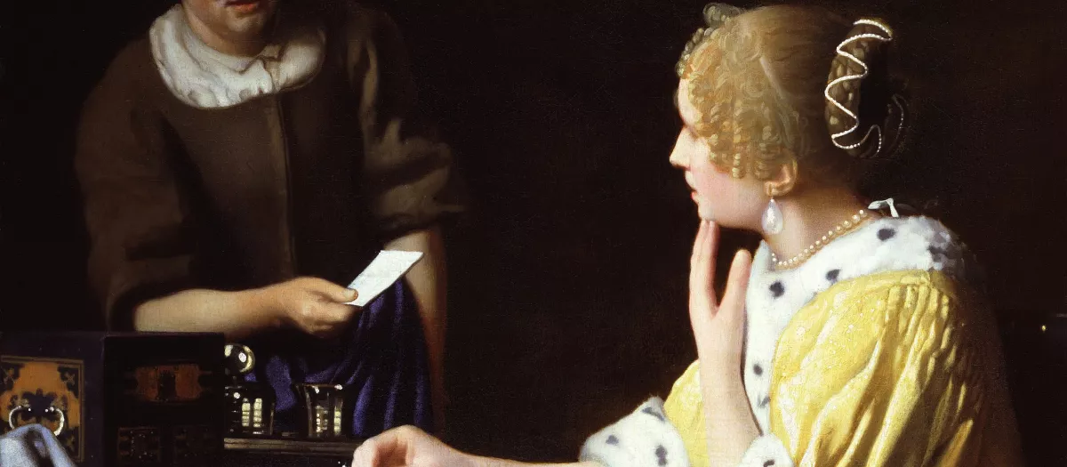 Detalle de Dama con criada y carta (1667) de Vermeer