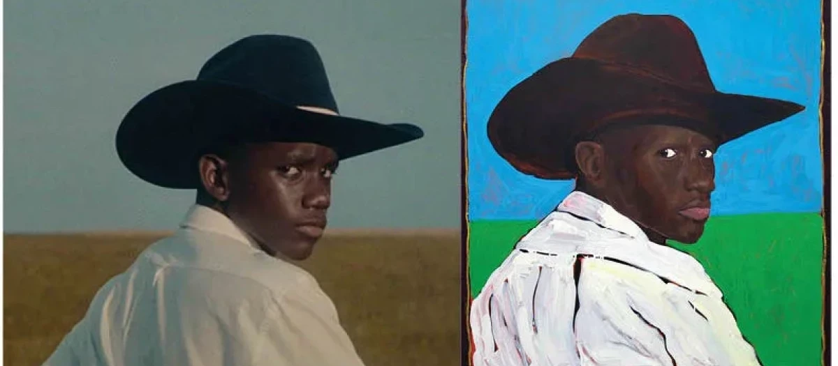 Los cuadros, que forman parte de la exposición Programa de artistas vascos 2015-2019 y que el Guggenheim inauguró el pasado 8 de julio, representan a un joven negro con un sombrero de vaquero y en el que en uno de ellos aparece mirando hacia atrás contra un fondo abstracto que muestra el campo y cielo. Una imagen prácticamente calcada del fotograma en cuestión.
