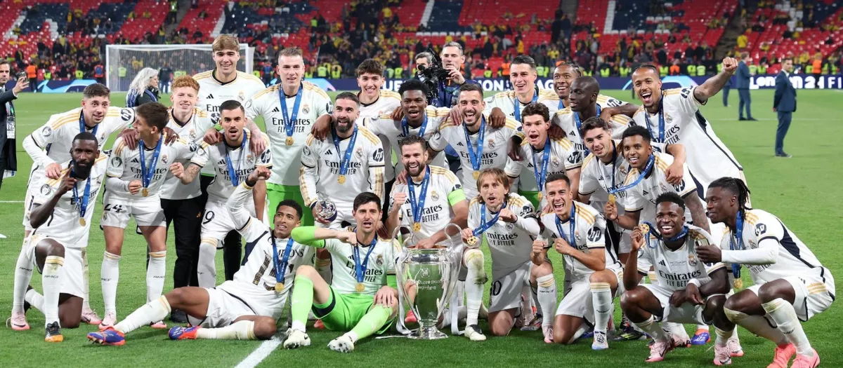 La plantilla del Real Madrid celebra la Decimoquinta en Wembley