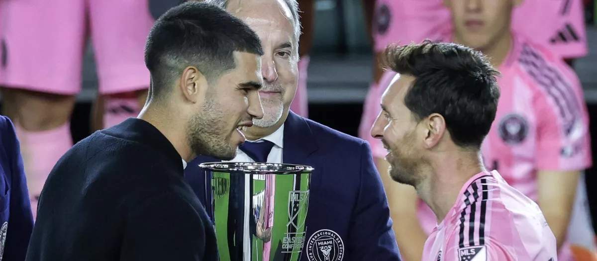 Carlos Alcaraz entrega el título de conferencia de la MLS a Leo Messi