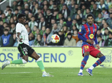 Había intensidad y ganar por parte de ambos equipos y el partido, que no era malo, apenas tenía ocasiones. Las delanteras estaban con la pólvora mojada y ni siquiera Lamine Yamal, muy controlado por Mario García, conseguía desequilibrar un duelo que se fue al descanso con empate a nada. Le sabía mejor al Racing, que apenas había tocado la pelota (18 % de posesión) aunque los azulgranas tampoco hicieron mérito para adelantarse en el marcador.