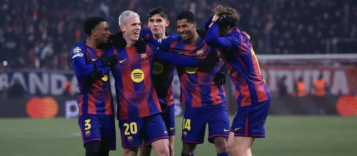 Los jugadores del FC Barcelona, en el partido ante el Slavia de Praga
