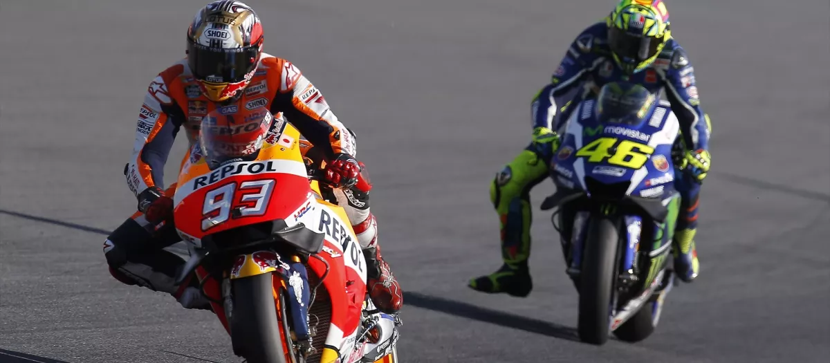 Rossi y Márquez compitiendo en una carrera de 2016