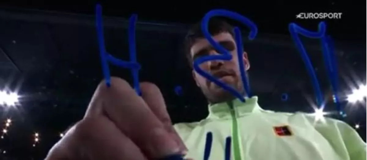 En la penúltima ronda del torneo se verá las caras contra el alemán Alexander Zverev y, minutos después de certificar el pase a semifinales, el de El Palmar se acercó a la cámara ubicada en la pista para plasmar una dedicatoria que no pasó para nada desapercibida en redes sociales.