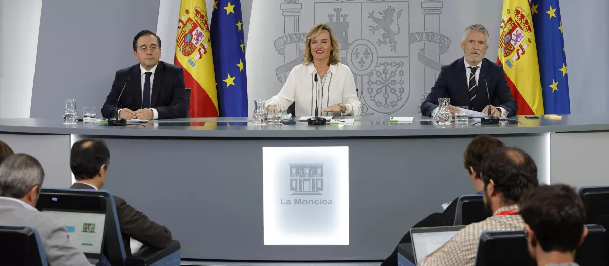 La ministra portavoz, flanqueada por los ministros Grande-Marlaska y Albares