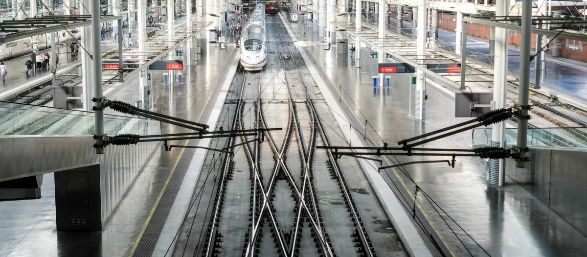 Andenes de la Estación de Atocha con un tren AVE de Renfe
