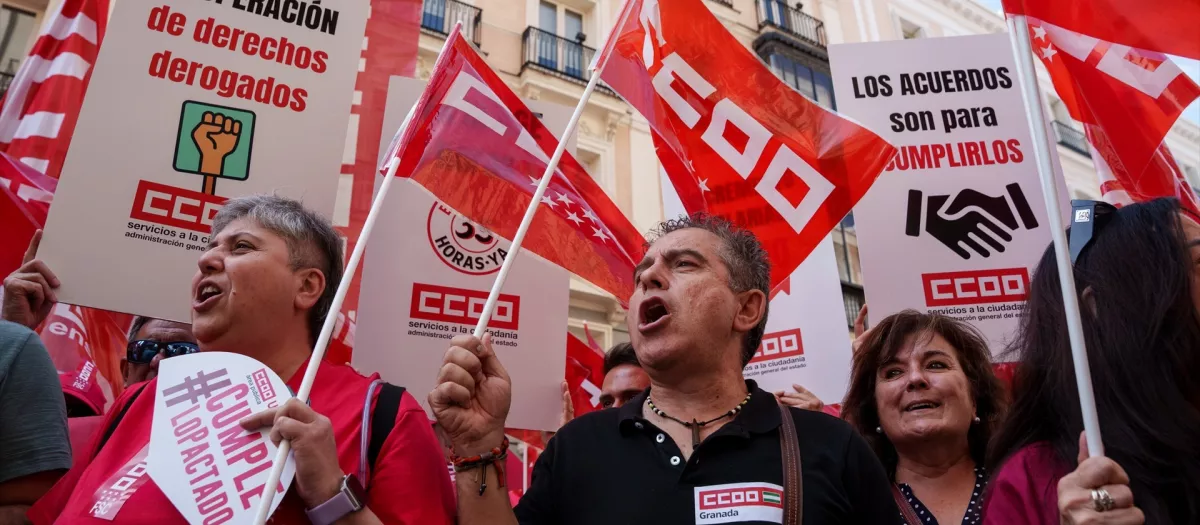 Concentración de CCOO y UGT por los incumplimientos del Gobierno con los funcionarios.