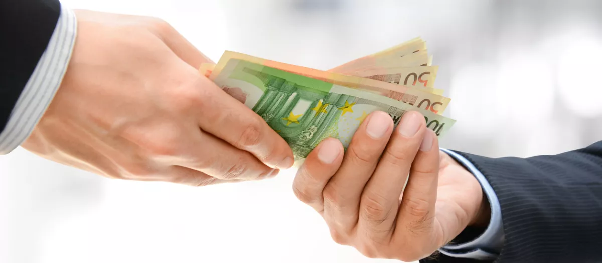 Hombre de negocios manos pasando dinero Euro