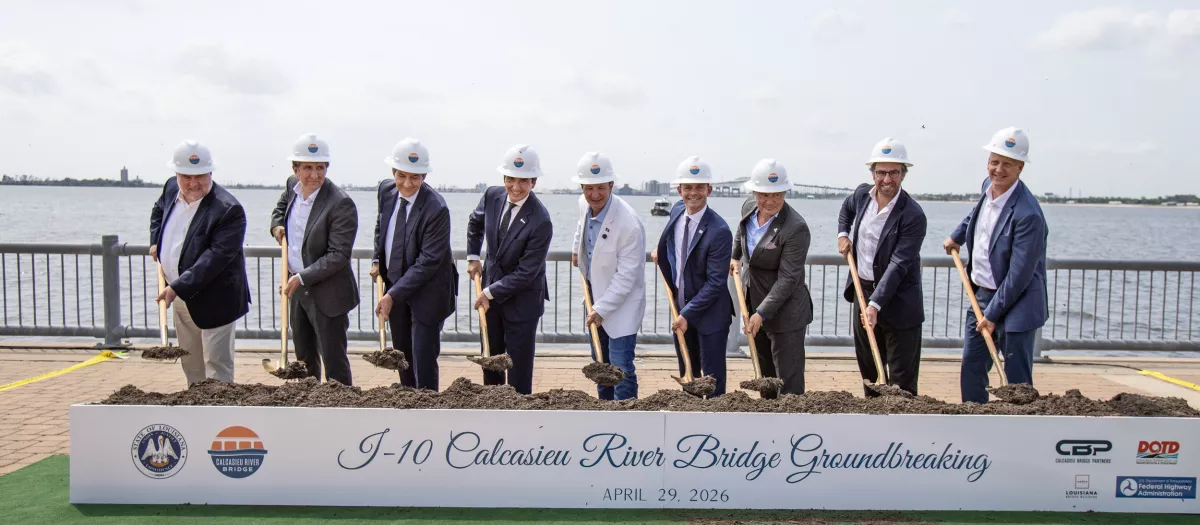 El arranque oficial de las obras se escenificó en un acto celebrado en Lake Charles, presidido por el gobernador de Luisiana, Jeff Landry, y que contó con la presencia de autoridades federales, estatales y locales, así como directivos del consorcio. Entre ellos se encontraba Rafael Gómez del Río, director general de Sacyr Ingeniería e Infraestructuras, en representación del grupo español.