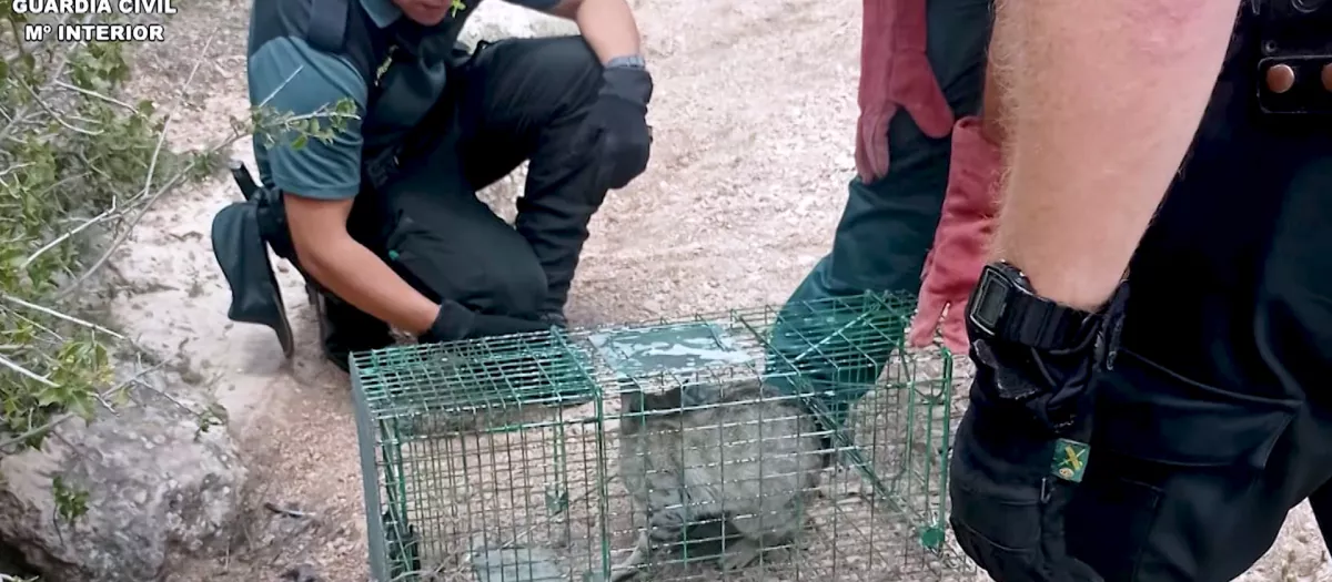 La Guardia Civil rescata a un ejemplar de gato montés atrapado en una jaula en Pinarejo, Cuenca