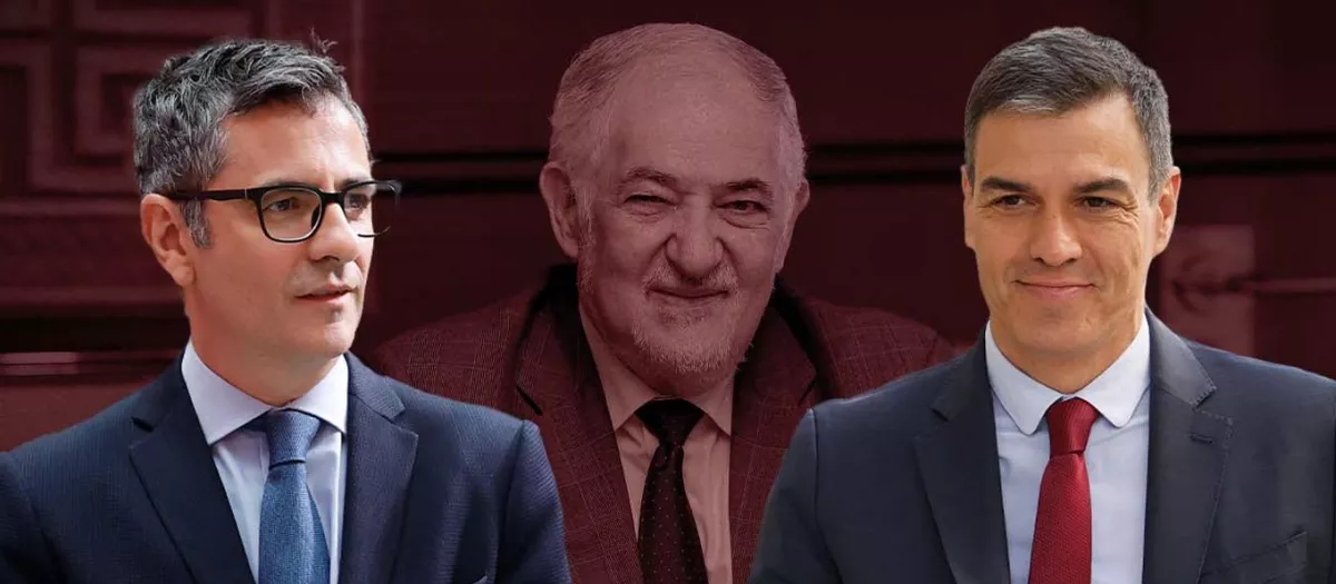 El ministro de la Presidencia, Félix Bolaños, el presidente del Gobierno, Pedro Sánchez y, detrás, el presidente del TC Cándido Conde-Pumpido