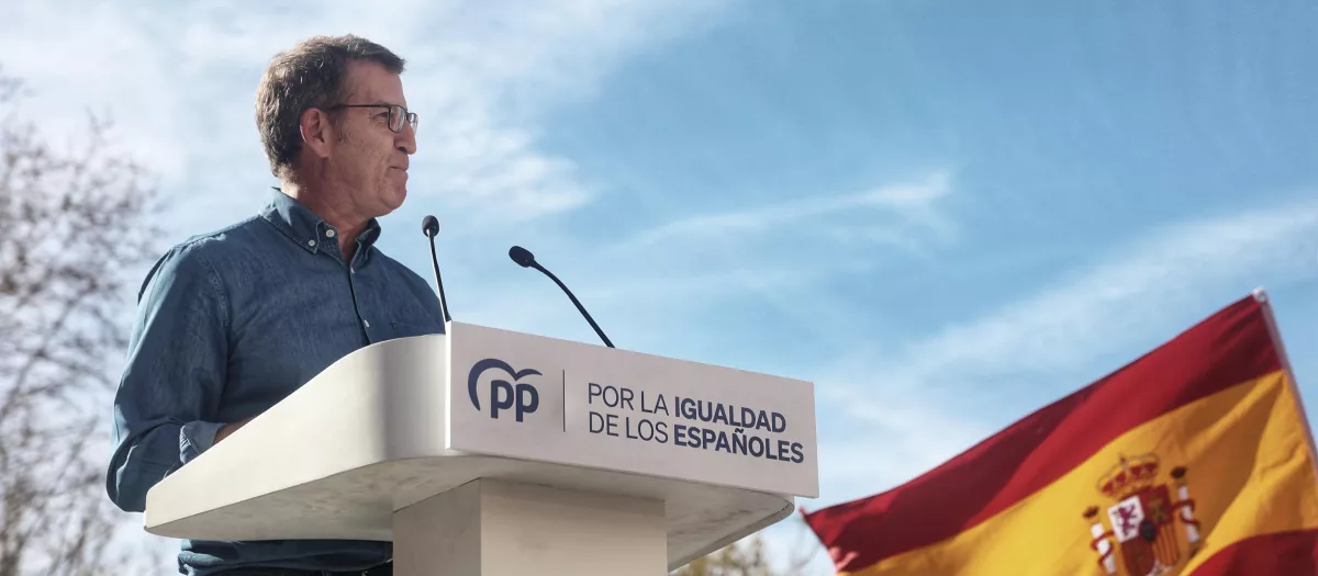 El presidente del Partido Popular, Alberto Núñez Feijóo, interviene durante una manifestación convocada por el PP