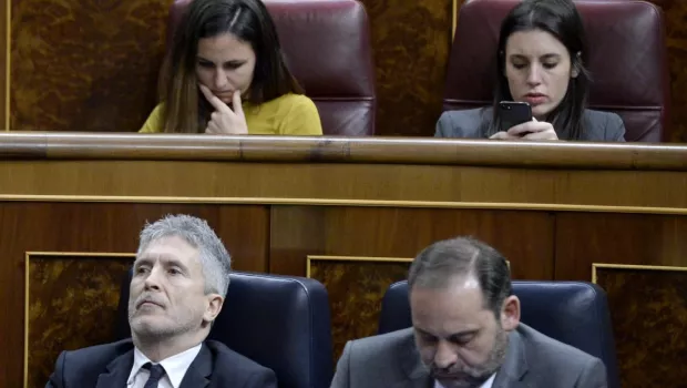 Ione Belarra, Irene Montero, Fernando Grande Marlaska y Jose Luis Abalos, en el Congreso