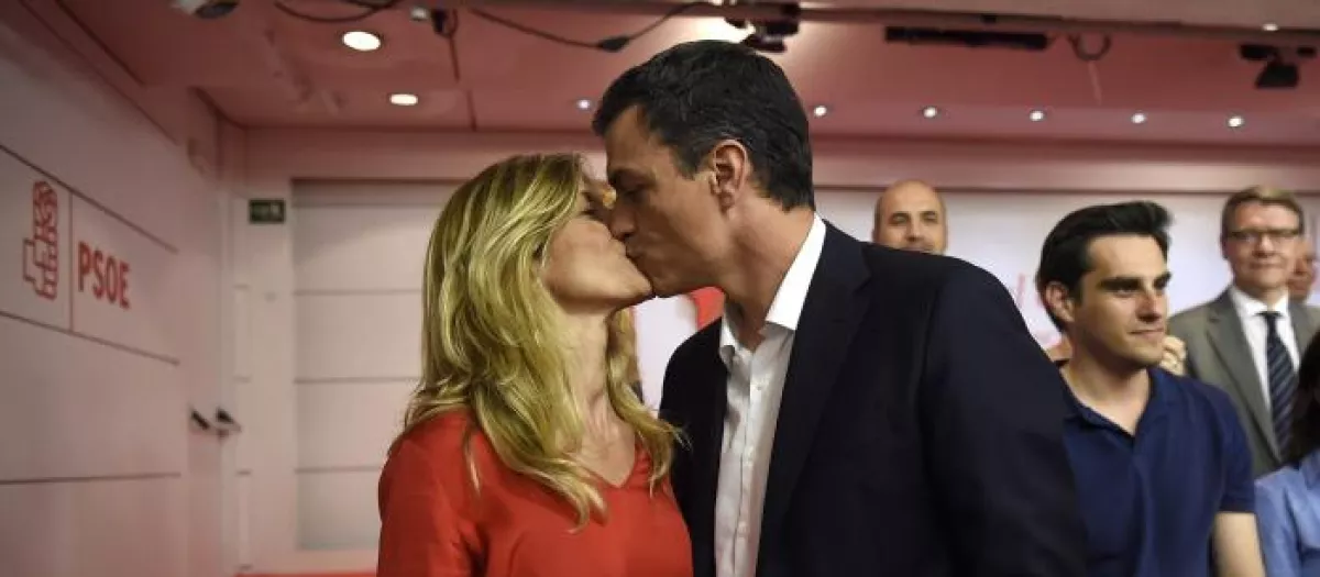 Pedro Sánchez y su mujer Begoña Gómez en la noche electoral de Partido Socialista durante las Elecciones Generales 2016