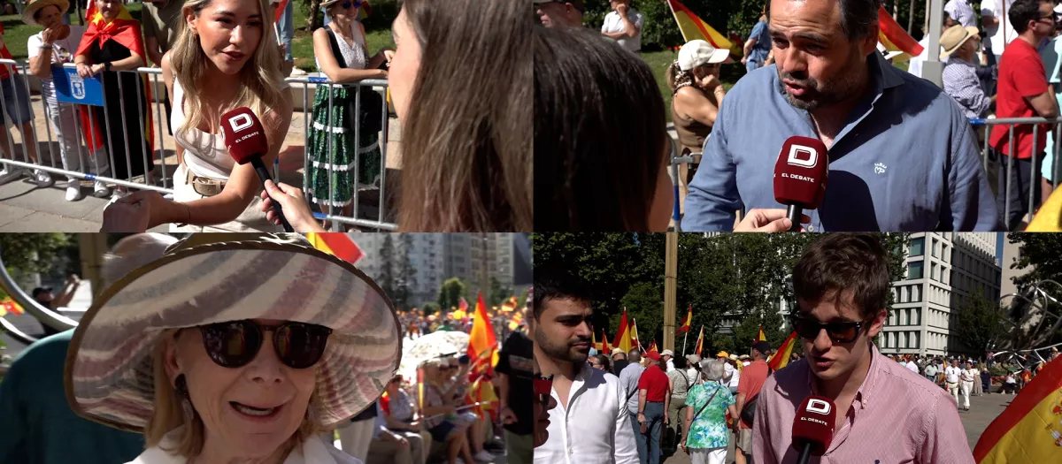 La periodista de El Debate, Iranzu G. Vergara, ha estado presente en la multitudinaria concentración convocada por el Partido Popular este domingo en la Plaza de España de Madrid, bajo el lema «Mafia o democracia». Desde el terreno, este medio ha podido hablar con varios dirigentes del PP como Esperanza Aguirre, Noelia Núñez y Paco Núñez, así como con numerosos ciudadanos que acudieron para mostrar su rechazo al Gobierno de Pedro Sánchez.