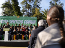 A la misma hora en la que Feijóo prometía «reducir la inmigración ilegal» pero a la vez rechazaba «el discurso de odio» -en alusión a Vox-, Abascal se plantaba en Alcalá de Henares para protestar contra el centro de acogida de inmigrantes de la localidad. Ello tras la violación de una joven por parte de uno de sus residentes, presuntamente. «Esto no ocurre porque sí, sino por unas políticas de inmigración masiva promovidas por el bipartidismo», lamentó.