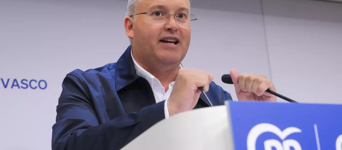El secretario general, Miguel Tellado, interviene junto al presidente del Partido Popular de Navarra, Javier García, en el inicio del curso político del PP de Navarra en Pamplona.