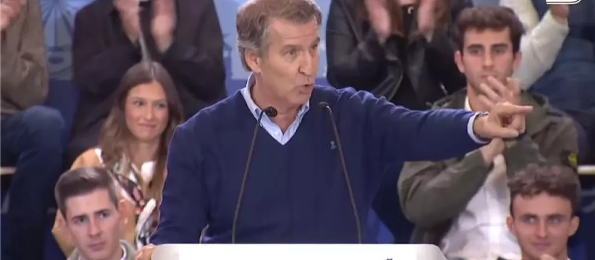 «Este miércoles (...) hemos visto algo increíble y os digo que no puede ser», ha comenzado diciendo Feijóo. «No puede ser que Bildu tome la palabra en el Congreso para hablar de fascismo y que no se levante un miembro del Gobierno y le diga 'para fascista, tú'. No puede ser».