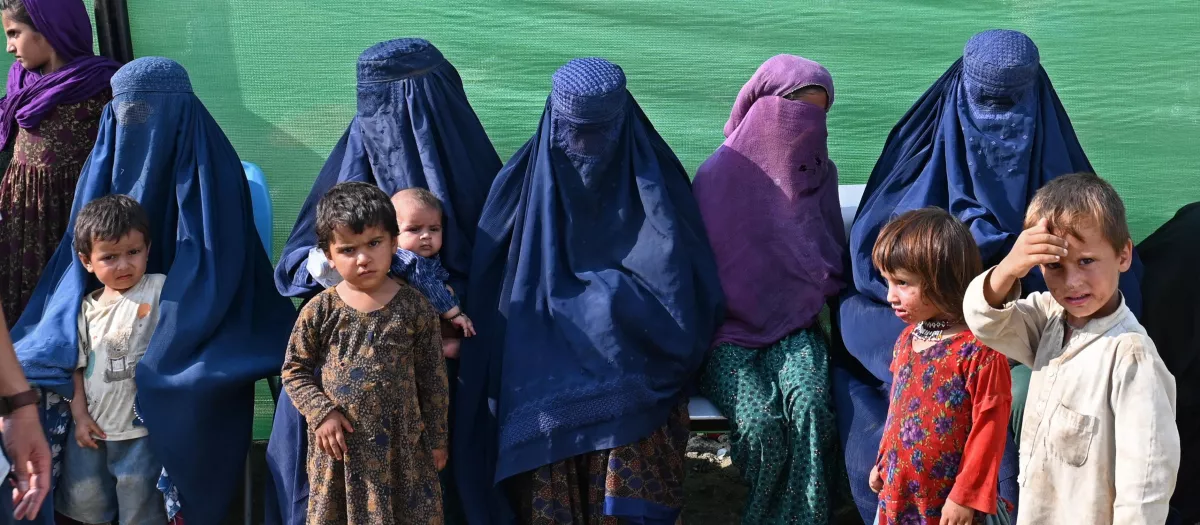 Mujeres y niños afganos con burka