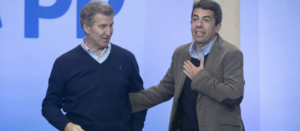 El presidente del PP, Alberto Núñez Feijóo, y el presidente de la Generalidad Valenciana, Carlos Mazón
