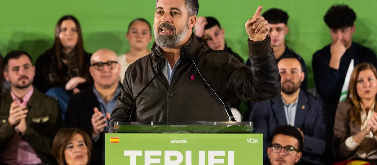 El líder de Vox, Santiago Abascal, comparece en un mitin de Vox en Jaca. Siga las imágenes en directo desde el reproductor de vídeo de la parte superior.