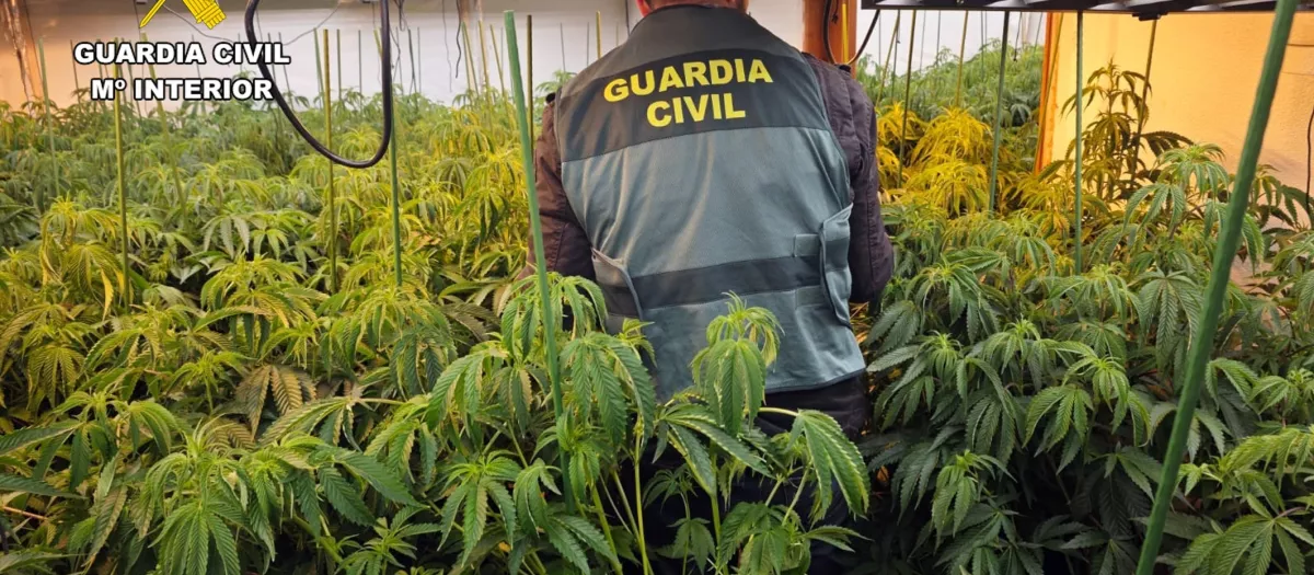 La Guardia Civil ha desarrollado en Torre Pacheco (Murcia) la operación ‘Grumbu’, que ha permitido desarticular un grupo delictivo dedicado al cultivo masivo de marihuana en una vivienda del municipio. La actuación se ha saldado con la detención de tres personas y la incautación de más de 1.500 plantas de cannabis, además de cogollos y material destinado a la producción de la droga.