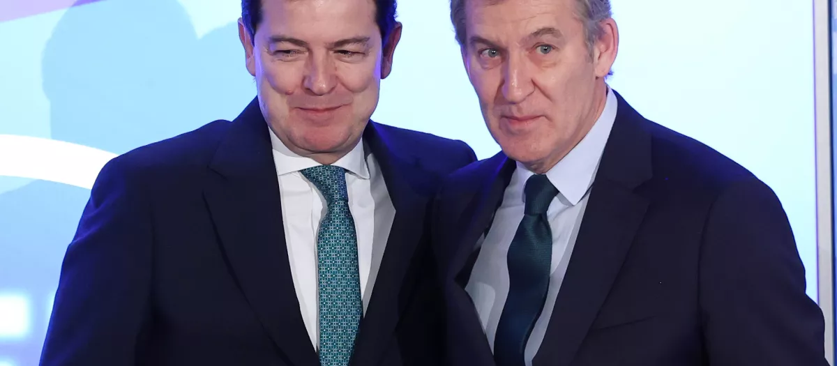 El presidente de la Junta de Castilla y León y candidato del PP para la reelección, Alfonso Fernández Mañueco, y el presidente del PP, Alberto Núñez FeijóoEuropa Press