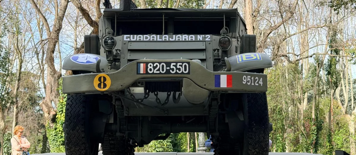 El protagonista de la exposición es el vehículo blindado semioruga (half-track) M3 de producción estadounidense. En la muestra se puede ver una unidad propiedad del Ministerio de Defensa francés que fue restaurado a semejanza del HT (half-track) M3 «Guadalajara» número 2, vehículo perteneciente a la 3º sección de combate de 'La Nueve' y que reemplazó al HT MS 'Guadalajara' puesto fuera de combate en Écouché el 17 de agosto de 1944, según figura en la cartela que acompaña al vehículo en la exposición.