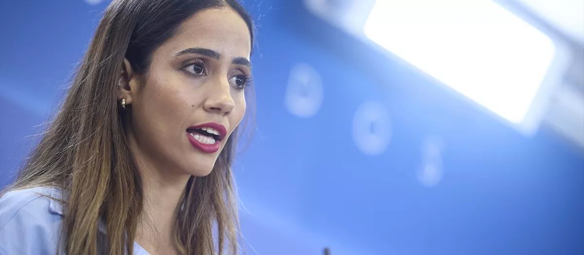 La diputada de Sumar Tesh Sidi durante una rueda de prensa en el Congreso de los Diputados. Foto de ARCHIVO