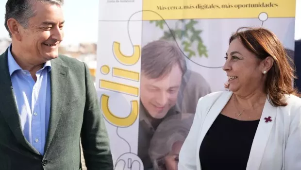 El consejero de la Presidencia, Antonio Sanz, con la presidenta de Cruz Roja Andalucía, Rosario García, candidata del PP para la Defensoría del Pueblo Andaluz