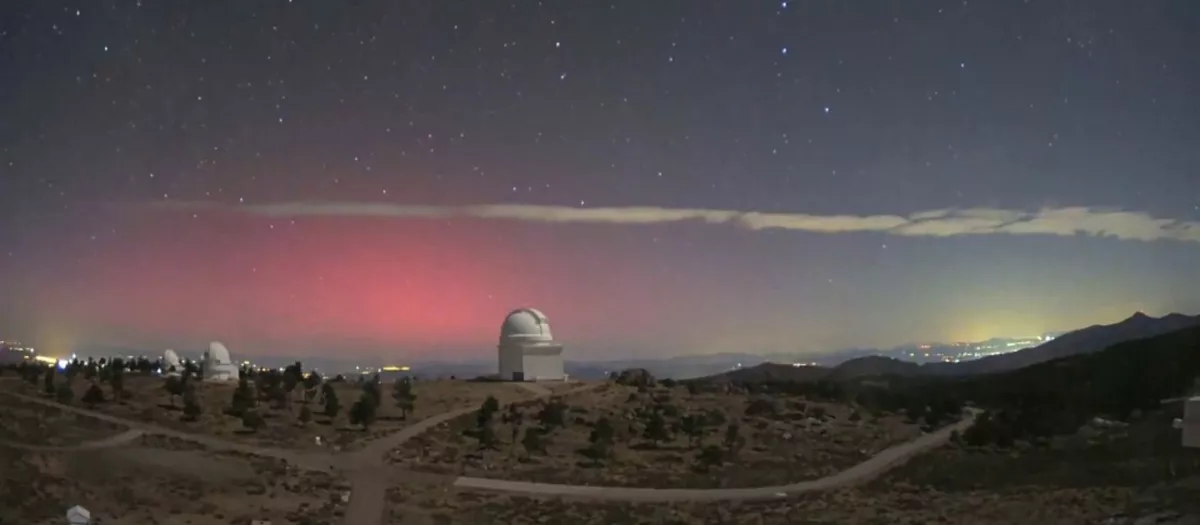 Las cámaras sensibles del centro astronómico han podido grabar el fenómeno en todo su esplendor, dando un tono rojo profundo al horizonte norte durante un par de horas. Se trata de una las más brillantes y mejor contempladas desde Calar Alto, junto con la registrada en mayo de 2024.