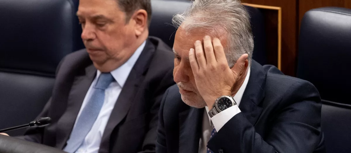 (Foto de ARCHIVO) El ministro de Agricultura, Pesca y Alimentación, Luis Planas, el ministro de Política Territorial y Memoria Democrática, Ángel Víctor Torres, durante un pleno en el Congreso de los Diputados