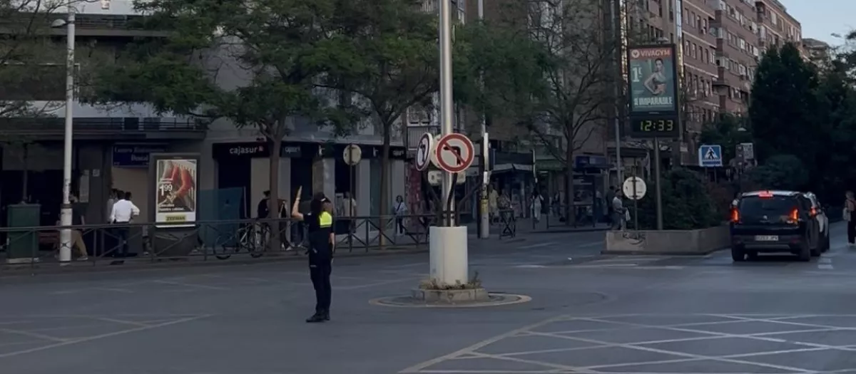 Policía local de Granada dirigiendo el tráfico por la tarde tras el apagón exacto a las 12:33