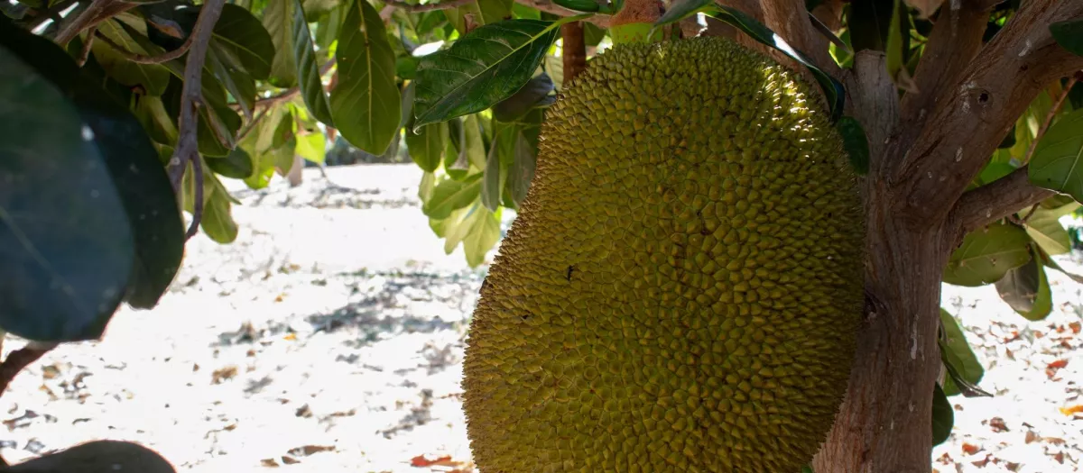 Pero cultivar este titán no es sencillo. Su tamaño aquí dista del trópico: rara vez supera los 15-20 kilos en la Costa del Sol. Además, la yaca es exigente: necesita humedad constante y huye del frío. Cualquier helada ligera puede echarlo todo a perder, limitando su expansión a zonas muy concretas y con riego garantizado.
