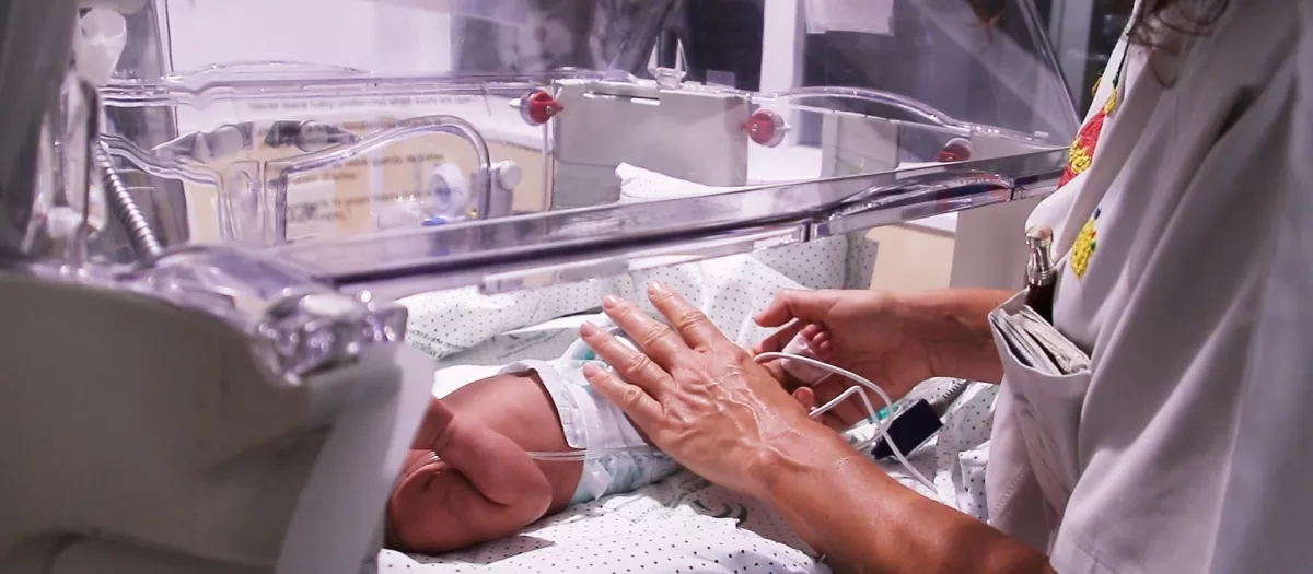 Una sanitaria atiende a un bebé prematuro