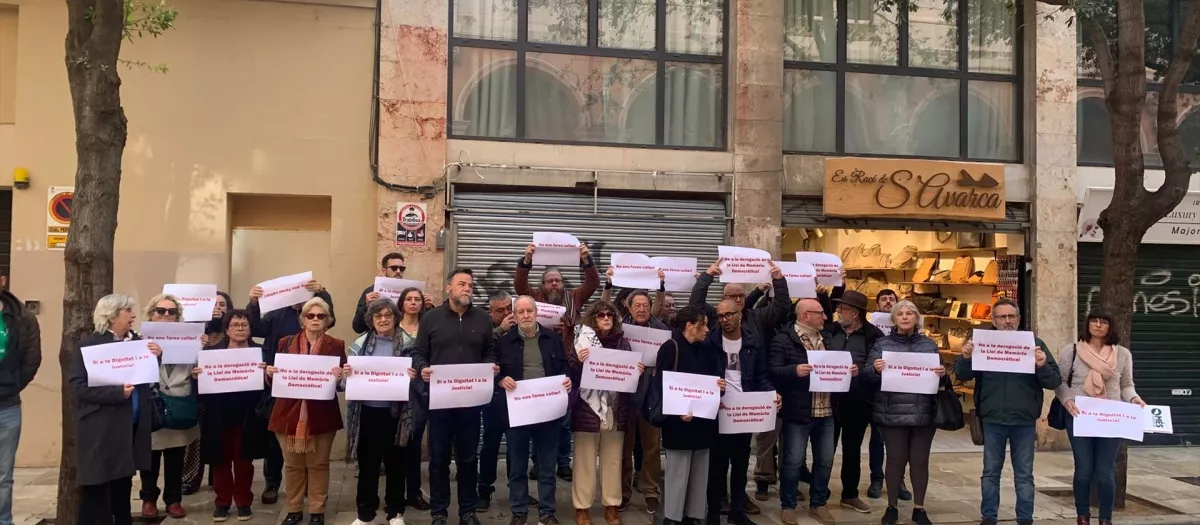 A las puertas de la Cámara, apenas una treintena de personas se manifestaba. Detrás de la pancarta, rostros de la cúpula de la izquierda balear se sumaron a las entidades memorialistas para tratar de frenar, sin éxito, lo que consideran un retroceso.