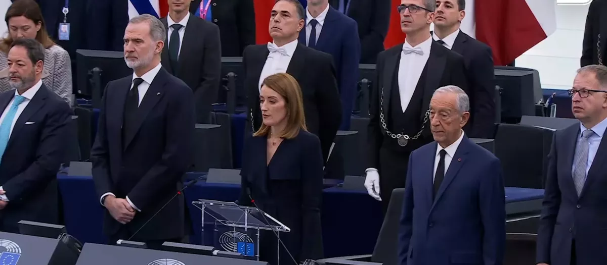 El Rey, antes de su intervención para conmemorar el aniversario de la entrada de España en la Unión Europea, ha participado en el solemne minuto de silencio junto al resto de europarlamentarios y el presidente de Portugal, que también celebra 40 años de entrada en la UE.