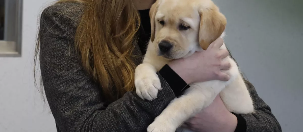 Con uno de los cachorros que se prepara para ser futuro perro guíaCasa del Rey