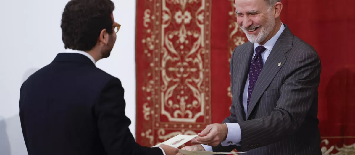 Don Felipe, que ha estado acompañado por el ministro de Exteriores, José Manuel Albares, ha dicho a los nuevos diplomáticos que «sois el contrapunto al tiempo en que vivimos: representáis un modo de actuar, de conduciros, que antepone los argumentos, el diálogo y la persuasión a la imposición y la fuerza».