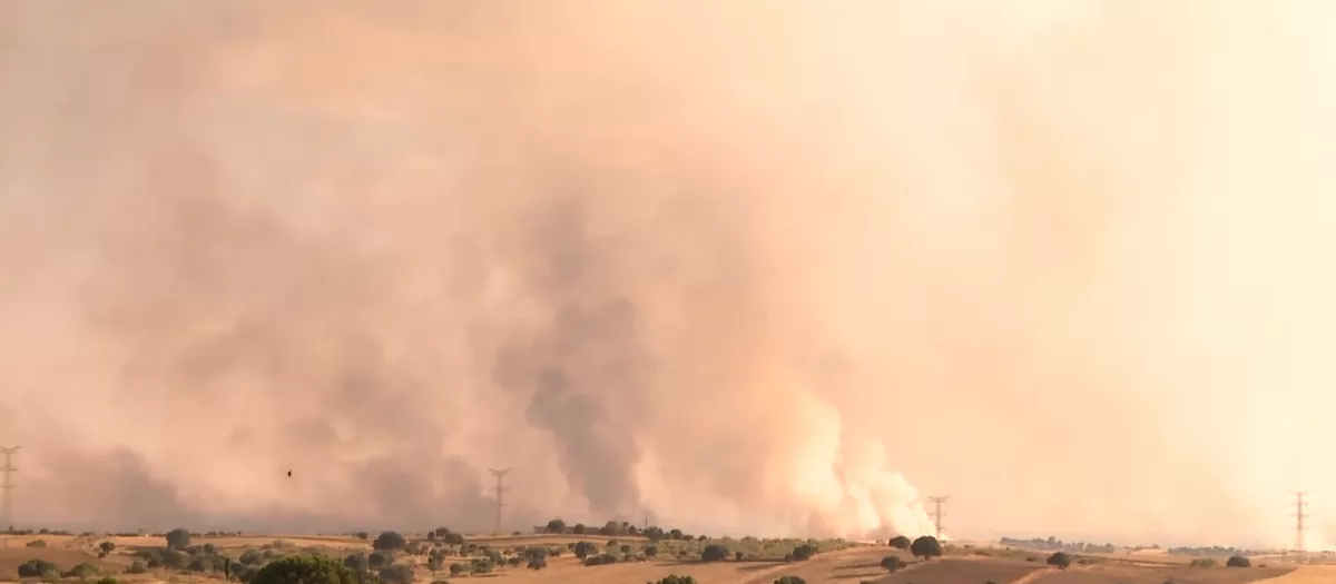 El incendio se ha originado este jueves en la localidad toledana de Méntrida y ha provocado el confinamiento y medidas de protección en la urbanización Calypo Fado, de Casarrubios del Monte, por humo denso, y ha pasado a situación operativa de Nivel 2.