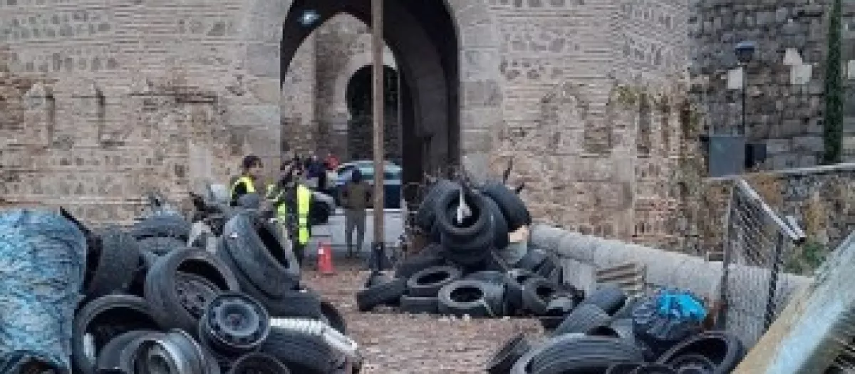 Chatarra de atrezo durante el rodaje de The Walking Dead en el Puente de Alcántara de Toledo